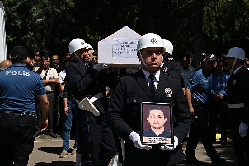 Gaziantep'te eğitim sırasında gaz tüfeği kapsülü yüzüne çarpan ve şehit olan polis memuru Halil İbrahim Kuzkun, son yolculuğuna uğurlandı.