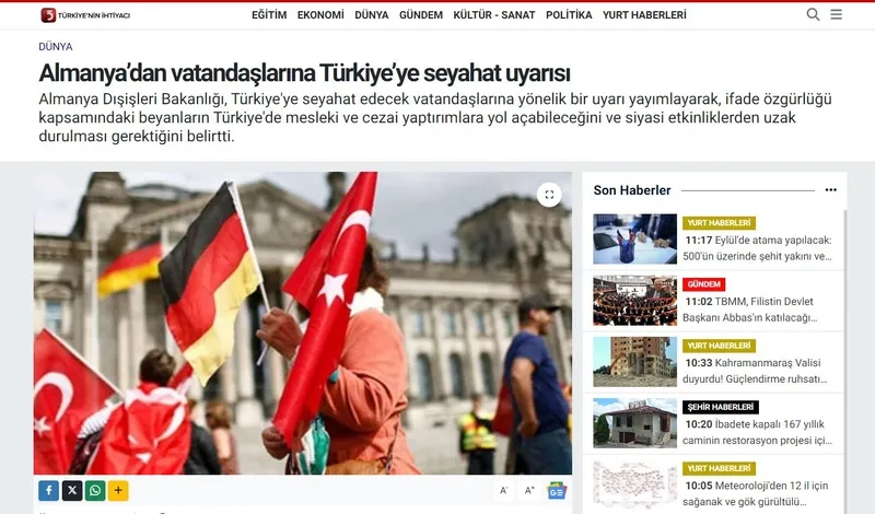 SÖZCÜ Gazetesi "Almanya'dan Türkiye'ye seyahat uyarısı" başlığıyla asılsız haberi okurlarıyla buluşturdu.