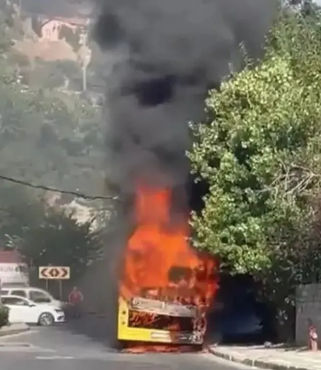 İstanbul Ümraniye'de park halindeki İETT otobüsü yandı