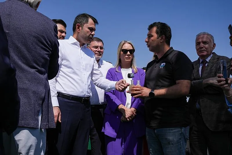 Konuşmanın ardından Kurum ve beraberindekiler kirliliğin yoğunlaştığı Bayraklı açıklarında inceleme yaptı.