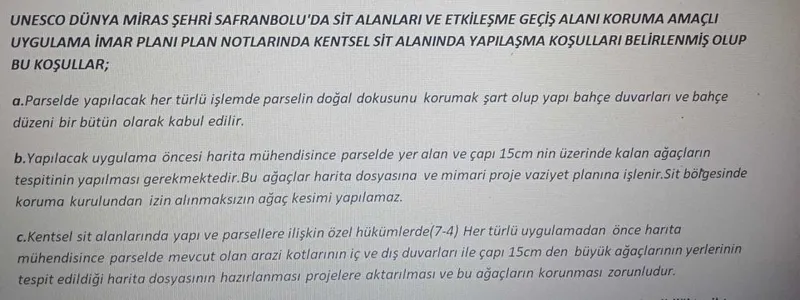 Daha sonra rapor ve sahte evraklarla kurula sunarak kurul üyelerinin yanlış karar almasına neden oldu. Böylece UNESCO Dünya Miras Şehri Safranbolu'da kentsel sit alanında yapılaşma koşullarını ihlal ettiler.