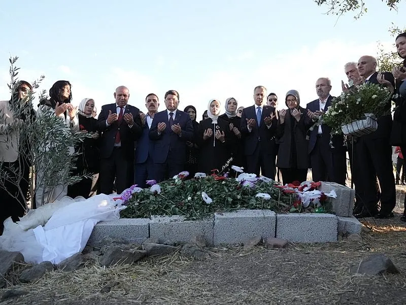 Narin Güran'ın kabrini ziyaret eden Bakanlar dua etti, mezara çiçek bıraktı.