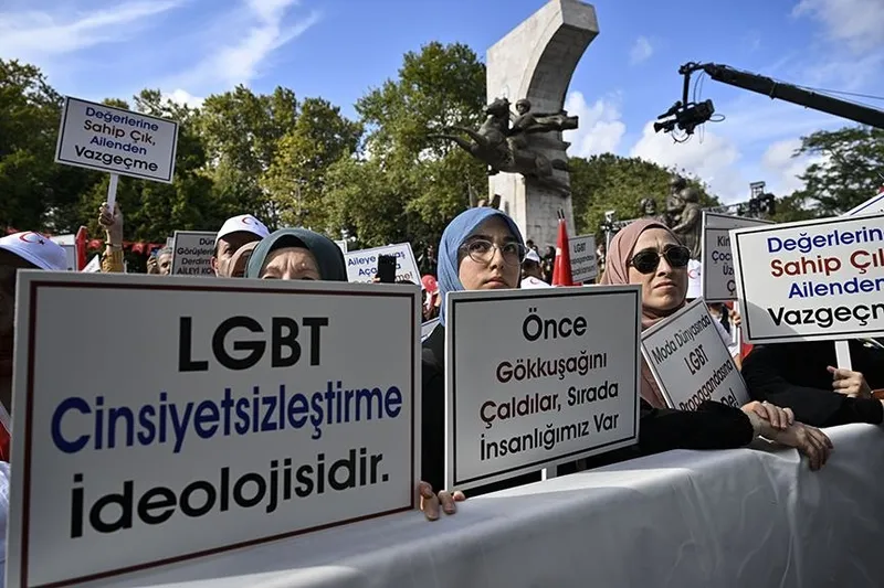 "LGBT propagandasına karşı duran uzmanların mesleki unvanları ellerinden alınmasın, çocuklarımız çizgi filmlerde ve kitaplarda LGBT propagandasına maruz kalmasın, cinsiyetsizleştirme ideolojisi sonucunda parklarımız çocuksuz kalmasın, dijital platformlarda ve sosyal medyada LGBT propagandası son bulsun diye yürüyüşümüzü gerçekleştireceğiz."