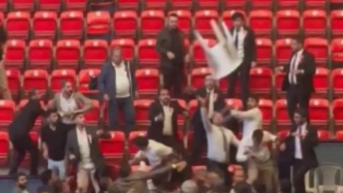 Ortamın gerilmesiyle iki grup arasında arbede çıktı. Bu esnada tekmeler, yumruklar ve sandalyeler havada uçuştu.
