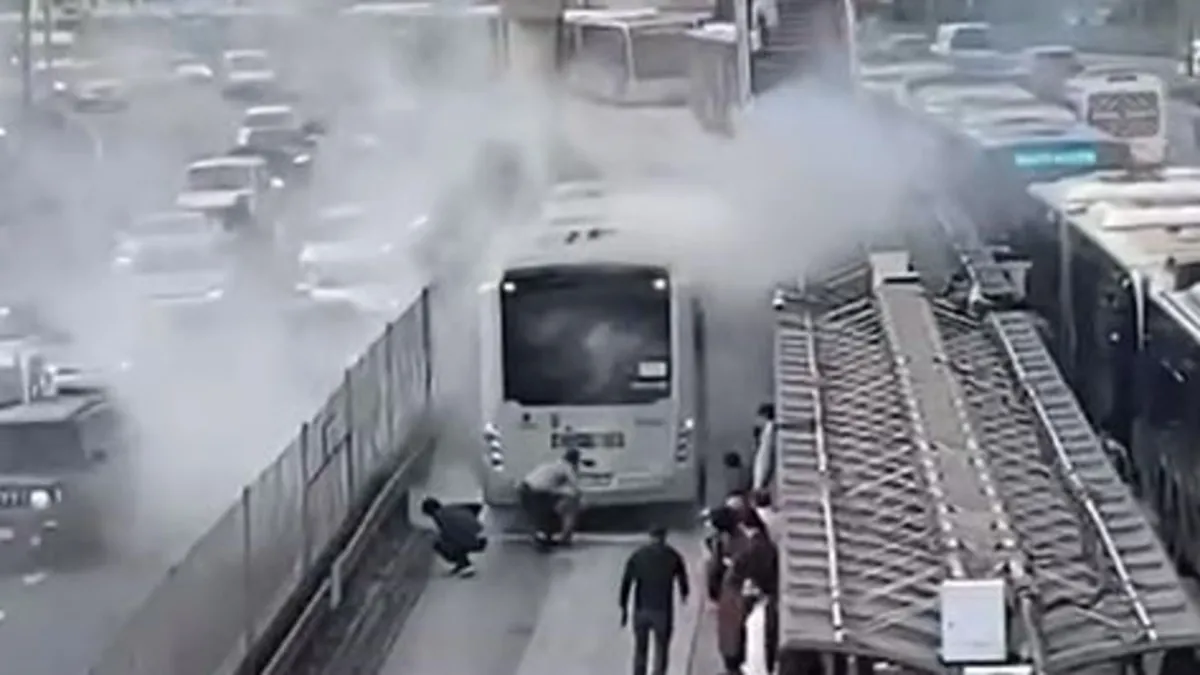 Metrobüs durağında yangın paniği