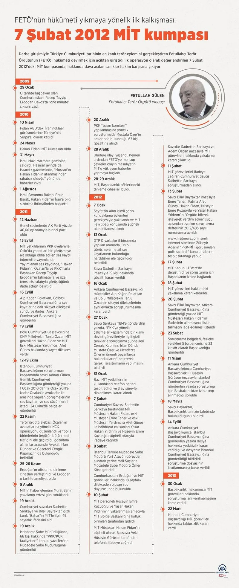 FETÖ'nün devletin en kritik noktalarından birine yönelik en kirli operasyonlarından biri, MİT Müsteşarı Hakan Fidan'ı tutuklama girişimiydi. Şubat 2012'de, Milli İstihbarat Teşkilatı (MİT) içindeki bazı isimler hakkında başlatılan soruşturma, Hakan Fidan'ın ifadeye çağrılması girişimiyle devam etti. Bu girişim, FETÖ'nün MİT üzerindeki kontrolü ele geçirme hamlesi olarak görülmüştü. Ancak bu plan başarısız oldu.