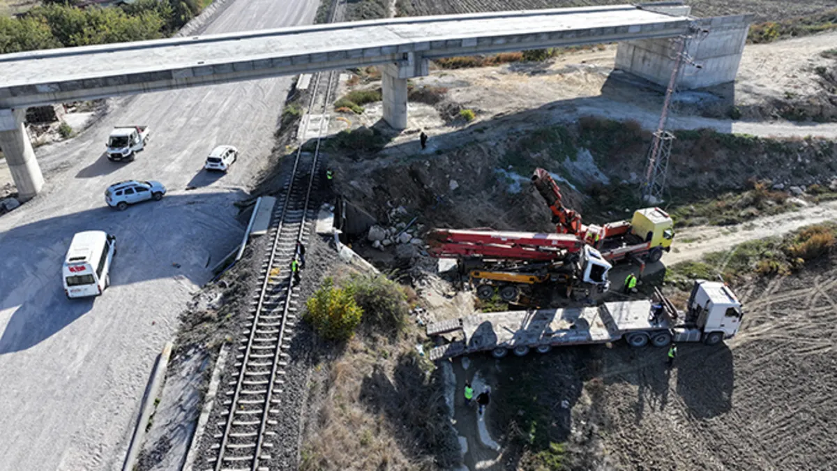 Edirne'de yolcu treni beton pompa aracına çarptı (AA)