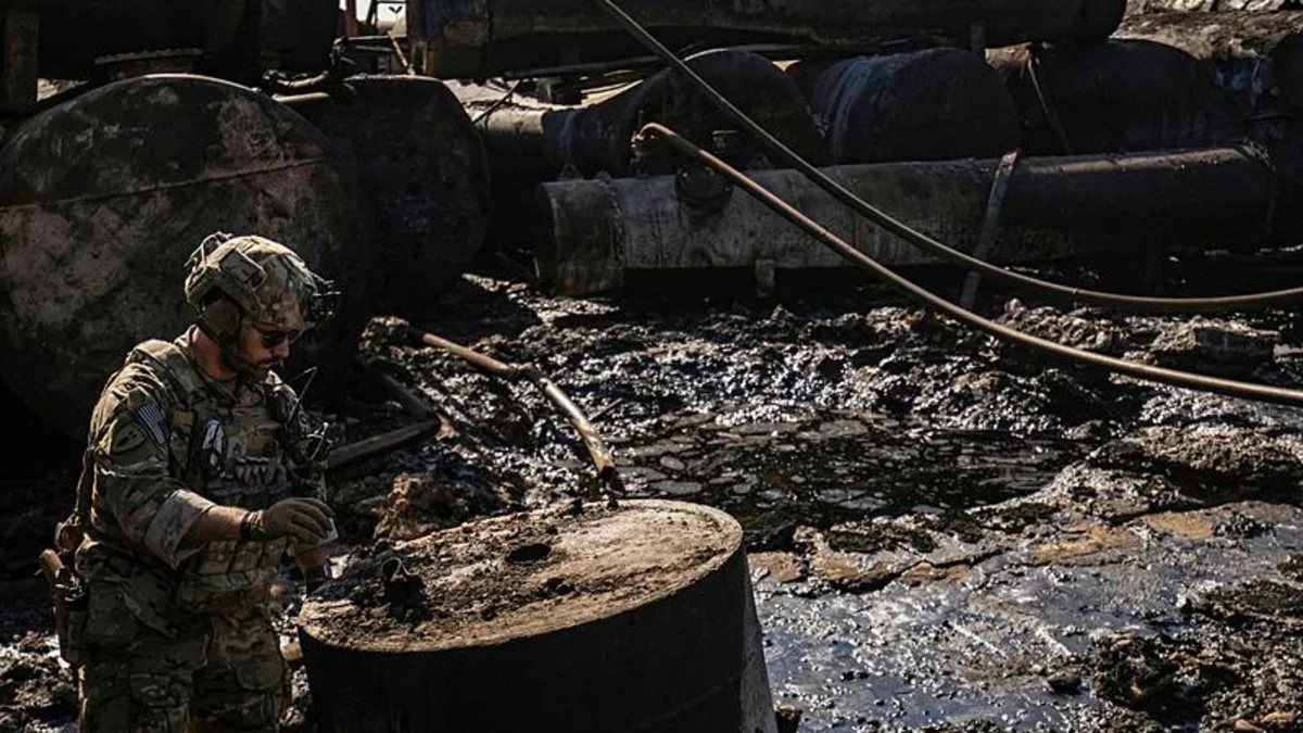 ABD Ordusu, Rumeylan beldesinde Türk Silahlı Kuvvetleri tarafından vurulan petrol tesisinde incelemelerde bulundu (AFP)