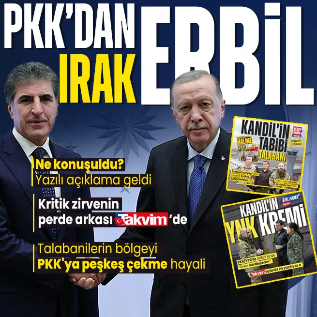 Başkan Recep Tayyip Erdoğan 24 Nisan 2024'de Erbil'deki temasları kapsamında, KDP Başkanı Mesut Barzani'yi kabul etti (Takvim.com.tr Fotoğraf Arşivi)
