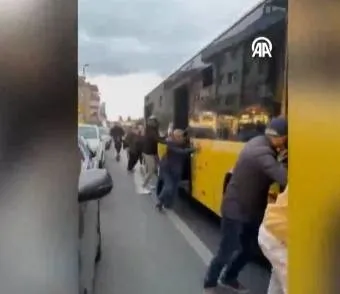 İstanbul'da sık sık arızalanan metrobüs ve otobüsler, vatandaşların hayatını olumsuz etkiliyor. Son olarak, seyir halindeyken arızalanan bir İETT otobüsünde, yolcuların otobüsü ittirdiği anlar cep telefonu kamerasına yansıdı.