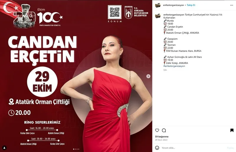 Yavaş'ın önceki skandallarına bir yenisi daha eklendi. Daha önce Ebru Gündeş ve Mor ve Ötesi konserleri için toplam 140 milyon TL ödendiği ortaya çıkarken, 29 Ekim 2023'te düzenlenen Candan Erçetin ve Murda konseri için de 80 milyon TL harcandığı belirlendi.