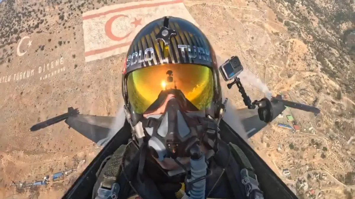 Milli Savunma Bakanlığı (MSB), SOLOTÜRK'ün Kuzey Kıbrıs Türk Cumhuriyeti'nin (KKTC) 41. kuruluş yıl dönümü dolayısıyla KKTC semalarında yaptığı gösteri uçuşundan kokpit içi görüntüleri paylaştı.