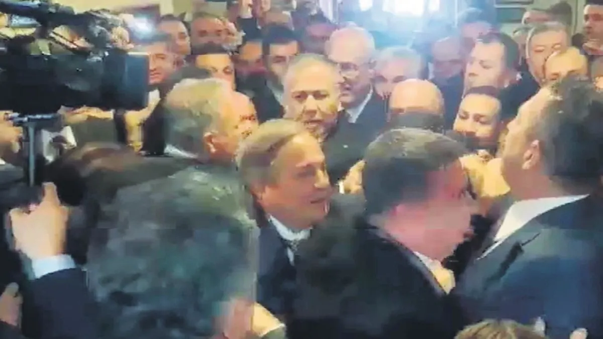 İtiş-kakış yaşandı. Yerlikaya, hepsini itip salona giriş yaptı. CHP'lilere tepki yağdı.