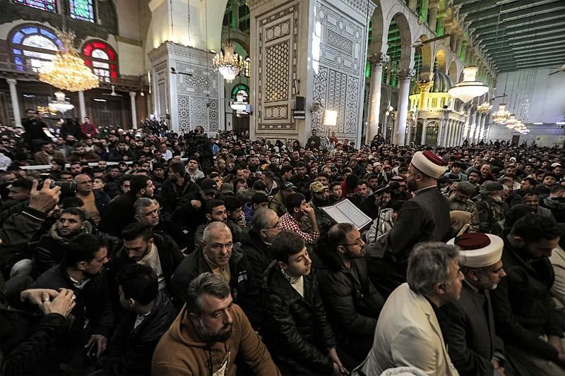 Suriye'de Baas rejiminin devrilmesinden sonra, başkent Şam'da bulunan Emevi Camisi'ndeki ilk cuma namazında saf tutuldu.
