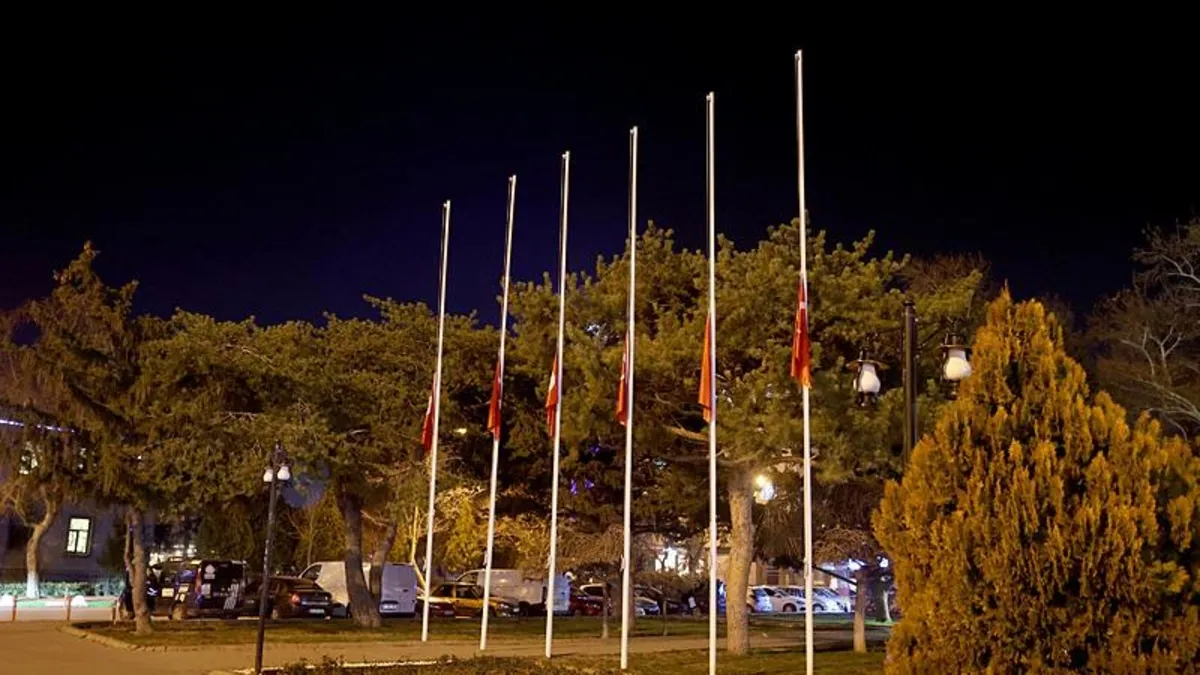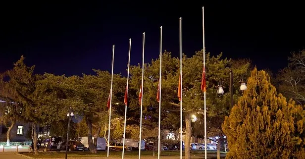 Milli yas ilanının ardından bayraklar yarıya indirildi