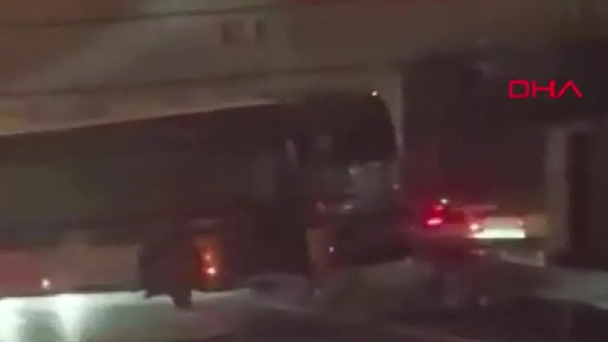 Şişli'de Zincirlikuyu durağında kontrolden çıkarak bariyerleri aşan metrobüs 4 otomobile çarptı.