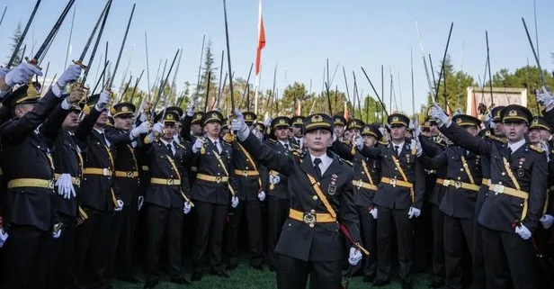 MSÜ Kara Harp Okulu Diploma Alma ve Sancak Devir Teslim Töreni'nin gerçekleştiği gün kılıç çekerek korsan yemin eden teğmenler (Fotoğraf: Takvim.com.tr Arşiv)