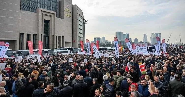 Sözde İmamoğlu'na destek vermek için Çağlayan Adliyesi'ne gelen kalabalık grup ise, DHKP-C terör örgütünün kullandığı "Ya hep beraber ya hiçbirimiz" sloganları atarak sokak çağrısında bulundu.