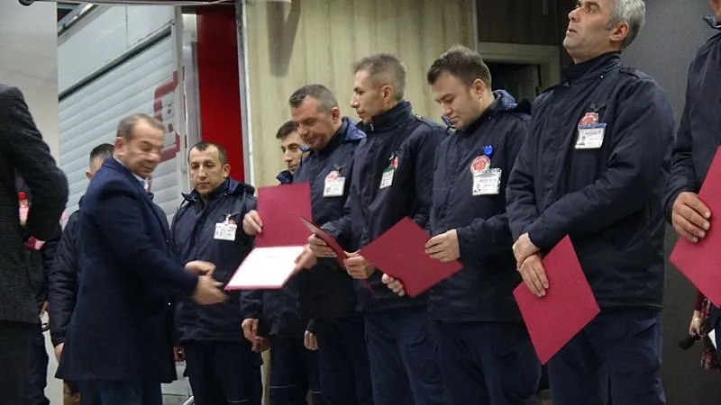 Devam eden soruşturma kapsamında tutuklu bulunan dayısının oğlu belediye başkan yardımcısı, itfaiye müdürü ve itfaiye çalışanının eşleri ile itfaiye müdürlüğü çalışanlarına hizmet şeref belgesi verdi.