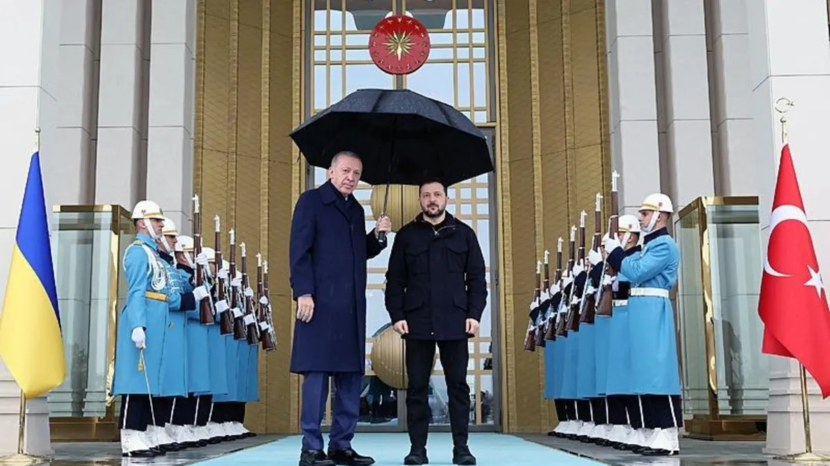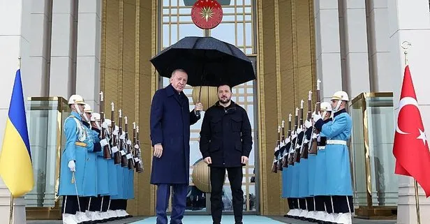 Başkan Erdoğan'ın Zelenskiy'i resmi törenle karşıladığı sırada verilen fotoğraf ise "Ukrayna'ya Türk şemsiyesi" değerlendirmelerine neden oldu.