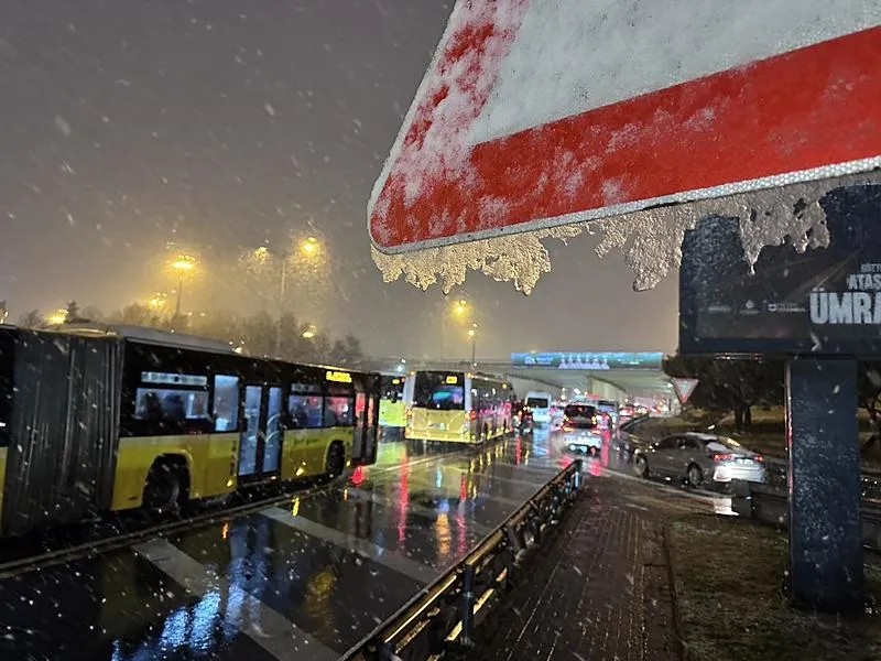 İstanbul Büyükşehir Belediyesi'nin Cep Trafik uygulamasına göre, saat 13.00 itibarıyla kent genelindeki trafik yoğunluğu yüzde 65 olarak kaydedildi. Ana arterlerdeki kar birikintileri ve kaygan yollar, trafik akışının ağır seyretmesine neden oldu.