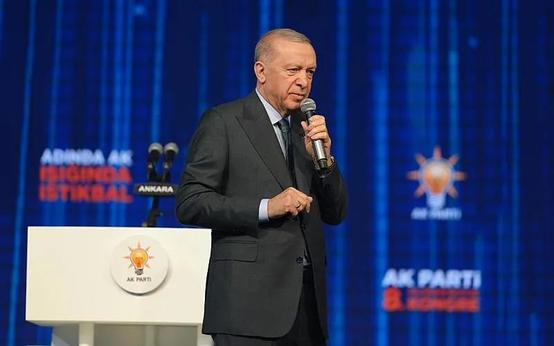 AK Parti'nin 8. Olağan Büyük Kongresi'ni büyük bir başarıyla tamamladıklarını belirten Erdoğan, "Şahsımı bir kez daha Genel Başkanlığa layık gördüğünüz için her birinize kalpten teşekkür ediyorum." dedi.