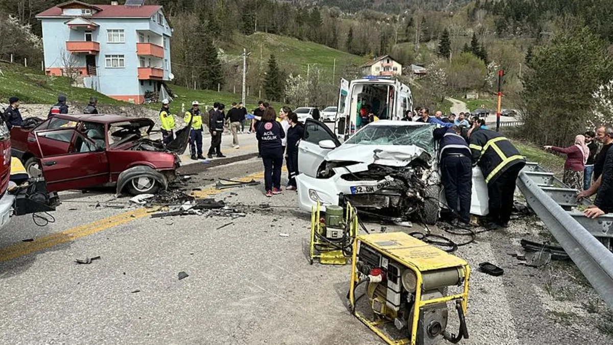 Kastamonu'nun Küre ilçesinde iki otomobilin çarpışması sonucu 3 kişi yaşamını yitirdi, 4 kişi yaralandı. (AA/1 Nisan)