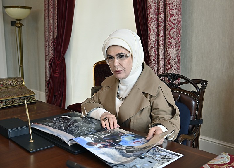 Cumhurbaşkanlığı kaynaklarından edinilen bilgiye göre; görüşmede, Emine Erdoğan, kurban vekaletini ihtiyaç sahiplerine ulaştırılmak üzere Türk Kızılay'a teslim etti.