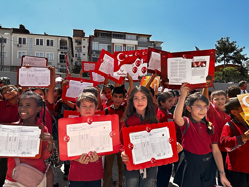 Öğrenciler, 2024-2025 eğitim öğretim yılının yorgunluğunu atacağı yaz tatili öncesinde karnelerini almak için okullara gitti.