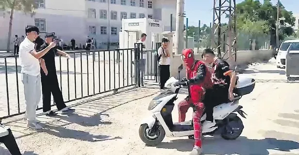 Mardin'de örümcek adam kostümlü gönüllü sınava geç kalan öğrenciyi motosikletle yetiştirdi