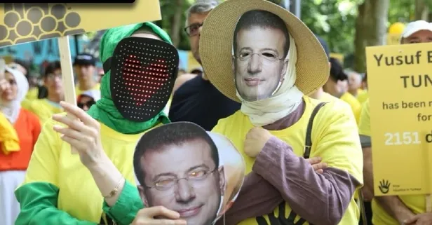 Firari FETÖ'cüler Fransa'da CHP'li Ekrem İmamoğlu maskeleriyle eylem yaptı