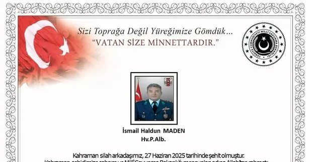 MSB'den yapılan açıklamada, "Libya'da görev yapmakta olan Hava Pilot Albay İsmail Haldun Maden, geçirdiği kalp krizi neticesinde derhal hastaneye sevk edilmiş, yapılan tüm müdahalelere rağmen kurtarılamayarak 27 Haziran 2025 tarihinde şehit olmuştur. Bizleri derin bir acı ve üzüntüye boğan bu olayda, hayatını kaybeden aziz şehidimize Allah'tan rahmet, kederli ailesine, Türk Silahlı Kuvvetleri ile asil milletimize başsağlığı ve sabır dileriz" denildi.