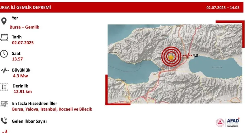 İstanbul'da hissedilen bir deprem oldu! AFAD merkez üssünü açıkladı: Bursa Gemlik'te 4,3