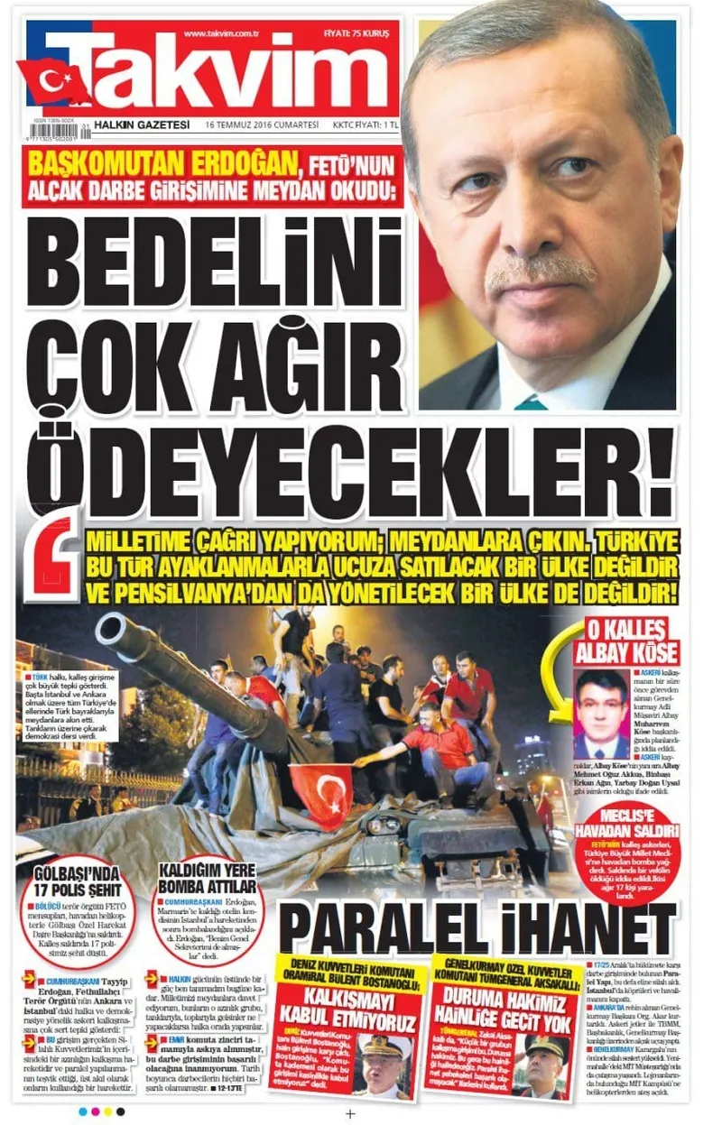 TAKVİM, o karanlık gecede milli iradenin yanında saf tuttu.