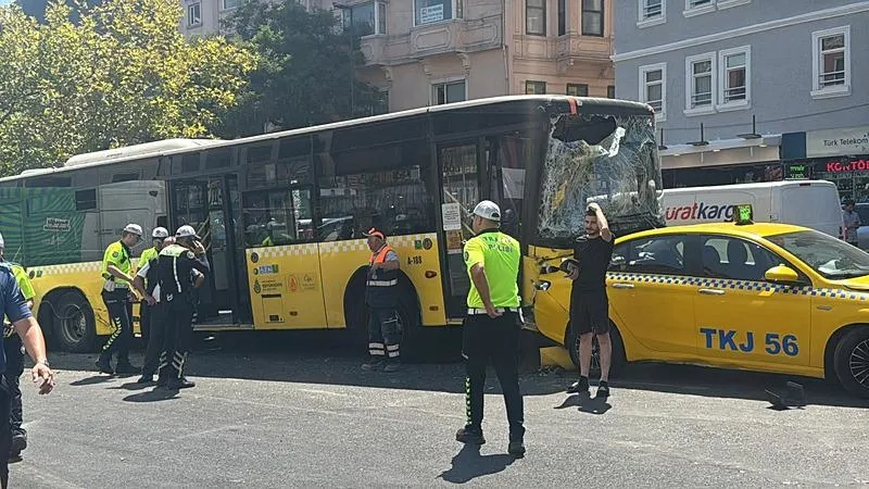İstanbul Beyoğlu'nda hareket halindeki İETT otobüsü freninde arıza meydana gelmesi nedeniyle önünde bulunan 10 araca çarptı.