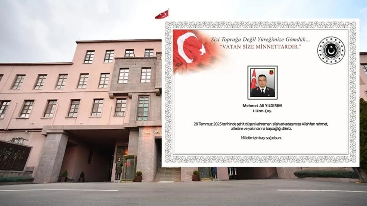 İçişleri Bakanı Ali Yerlikaya, Şırnak İl Jandarma Komutanlığında görevli Jandarma Uzman Çavuş Mehmet Ali Yıldırım'ın icra edilen bir operasyonda kayalıklardan düşerek şehit olduğunu bildirdi.