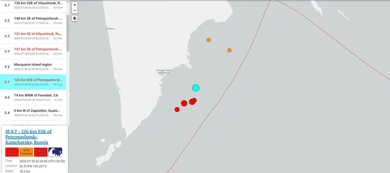 Rusya'da 8,8 büyüklüğünde deprem (Ekran görüntüsü)