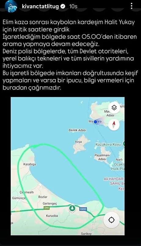 Havadan helikopterlerle, denizden de Sahil Güvenlik botları ve balıkçı tekneleriyle sürdürülen arama çalışmalarına, Halit Yukay'ın arkadaşı, oyuncu Kıvanç Tatlıtuğ da katıldı. Sahil Güvenlik ekipleriyle birlikte dalış yapan Tatlıtuğ'un, dronla havadan da arama yaptığı öğrenildi. Olay günü oyuncuyla telefonda görüşen Halit Yukay'ın, Bozcaada'daki ailesini alıp Yunanistan'da tatil yapan Tatlıtuğ ailesinin yanına gitmeyi planladığı öğrenildi. Sosyal medya hesabından video ile yardım çağrısı yapan Kıvanç Tatlıtuğ, paylaştığı haritada işaretlediği Çanakkale kıyılarında keşif çalışması yapılmasını istedi.