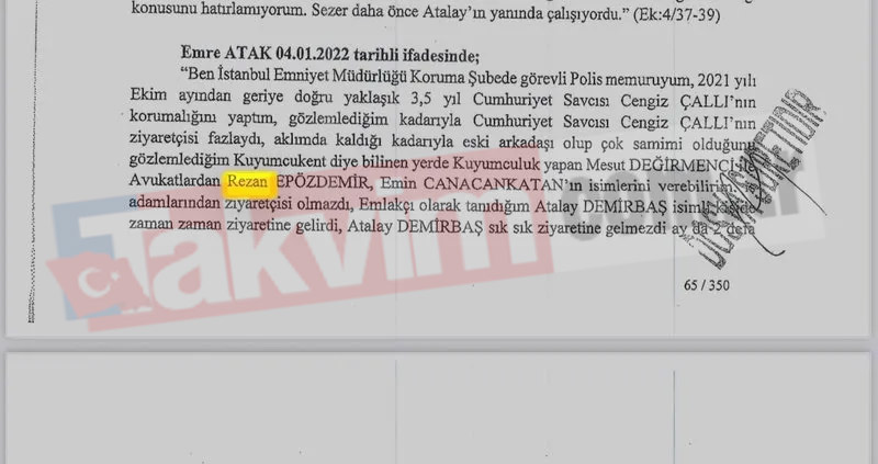Demirbaş'ın işaret ettiği koruma polisi Emre Atak da 04.01.2022 tarihli ifadesinde Rezan Epözdemir'in Cengiz Çallı'yı sık sık ziyaret ettiğini doğruladı.