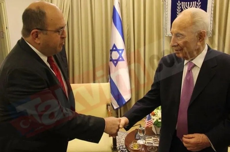 MOSSAD ajanı Dan Arbell, elinde binlerce Filistinlinin kanı olan eski İsrail Cumhurbaşkanı Şimon Peres'le yan yana.