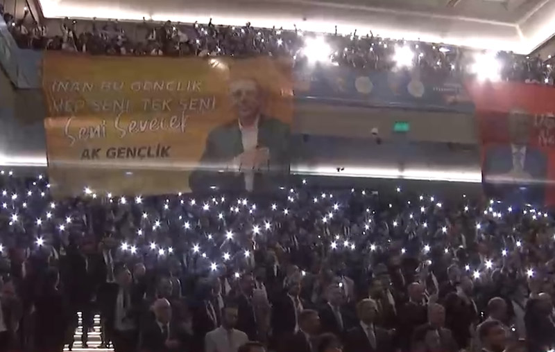 Ankara’da düzenlenen AK Gençlik Strateji ve İstişare Kampı’nın kapanış programında, Başkan Recep Tayyip Erdoğan gençlerin yoğun ilgisi ve tezahüratlarıyla karşılandı. Salona Kıraç’ın "Endamın Yeter" şarkısıyla giren Erdoğan, gençlerin Azer Bülbül’ün “İlle de Sen” parçasındaki “Deliler gibi aşığız sana” sözlerini hep bir ağızdan söylemesi üzerine "Ben de deliler gibi aşığım size" diyerek karşılık verdi. Samimi atmosferin yaşandığı programda Erdoğan, kucağına aldığı 4 aylık bir bebeği öperek ailesine hediye takdim etti.