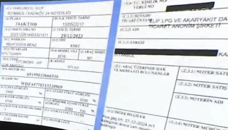 34 AKT 500 plakalı aracın Aktaş'ın şirketine ait olduğunu gösteren araç ruhsatı (takvim foto arşivi)
