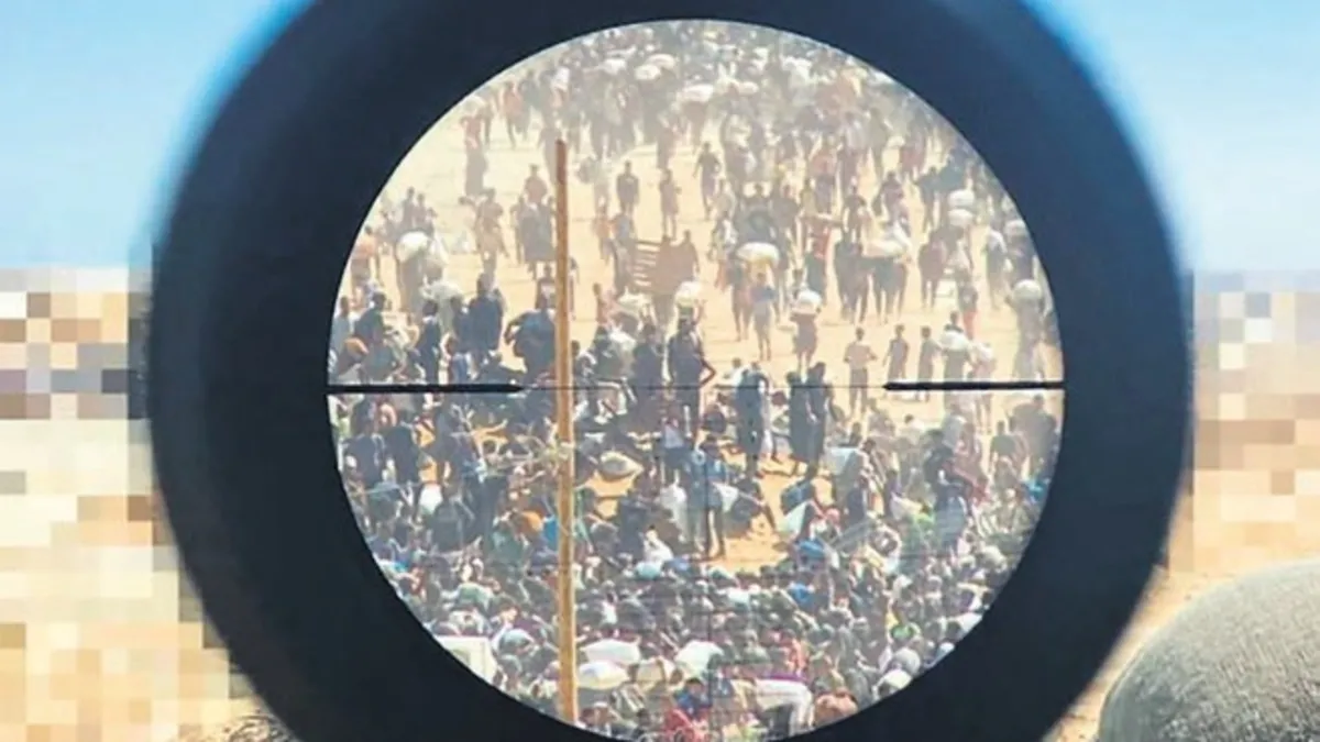 İsrailli bir terörist, Gazze’deki gıda yardımı almak isteyenleri nasıl vurduğunun fotoğrafını paylaştı. Bu skandal fotoğrafa dünyanın dört bir yanından tepki yağdı.
