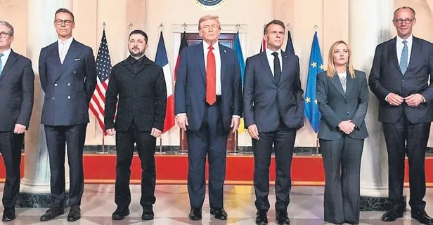 Trump, Zelenski ve AB liderleri, zirve fotoğrafı çektirdi. Öte yandan mikrofon açık kalınca Trump'ın Fransa Cumhurbaşkanı Macron'a, "Kulağa delice geliyor ama Putin benim için anlaşma yapacak" dediği duyuldu.