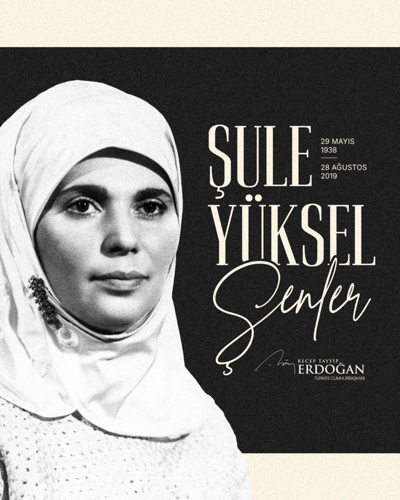 "Örnek hayatı, kaleme aldığı eşsiz kitapları, konferansları ve mücadelesiyle yakın tarihimizde silinmez izler bırakan yürekli bir dava kadını olan Şule Yüksel Şenler Hanımefendi'yi ahirete irtihalinin 6'ncı yılında rahmetle yâd ediyorum. Mekânı cennet olsun…"