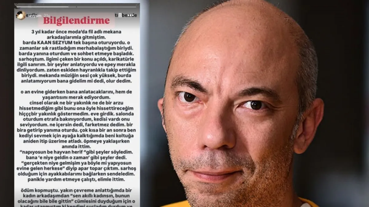 Son dönemlerde ortaya atılan cinsel taciz ifşaları gündemi sarsmaya devam ediyor. Bu skandallara ise bir yenisi daha eklendi. Bir kadın sosyal medya hesabından Birgün yazarı Kaan Sezyum'un cinsel saldırısına uğradığını duyurarak, "Beni koltuğa aniden itip üzerime atladı" dedi. Tüm bu gelişmeler sıcaklığını korurken Sezyum hakkında çıkan cinsel saldırı iddiasını kabul ederek sosyal medyadan mide bulandıran açıklamalarda bulundu.