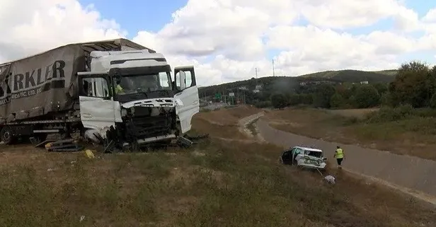 Feci kaza, dün saat 11.30 sıralarında Kuzey Marmara Otoyolu'nda meydana geldi. Hüseyinli gişelerinden çıkış yapan çıkış yapan 34 R 0717 plakalı TIR, şoförünün direksiyon hakimiyetini kaybetmesi üzerine kontrol noktasındaki jandarma aracına çarptı. Kazanın etkisiyle savrulan ekip aracı yol kenarındaki sulama kanalına düştü