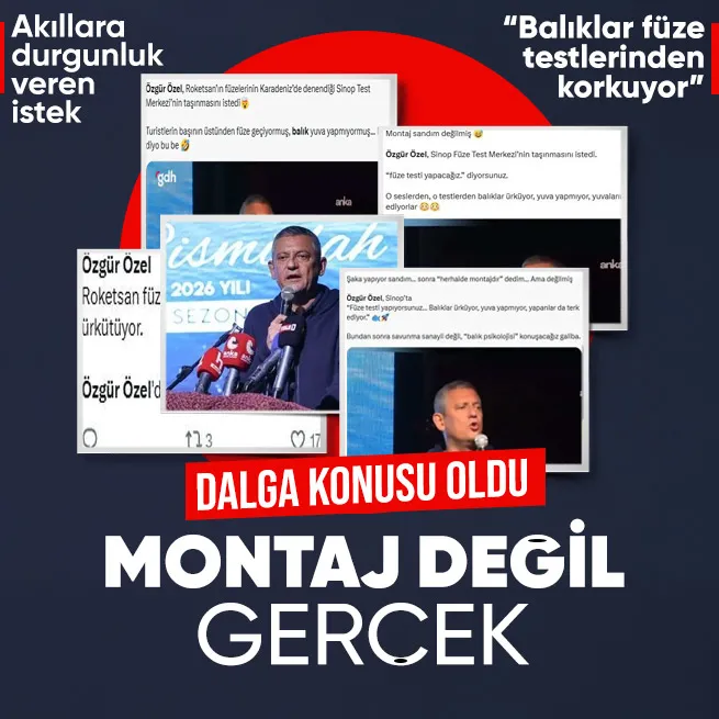Yolsuzluk ve şaibelerle anılan CHP'nin Genel Başkanı Özgür Özel'in Sinop'ta bir açılış programında yaptığı "Balıklar füze testinden korkuyor" açıklamasına tepki gösteren Erdoğan, "Özgür Bey'in zannediyorum ne füzelerden haberi var, ne Sinop'ta balıkçılığın gelişiminden, ne de turizmden. "Balıklar strese giriyor" diye açıklama yapmış. Ah ah ülkem ne hallere kaldı. Ama aşacağız bunları" dedi.