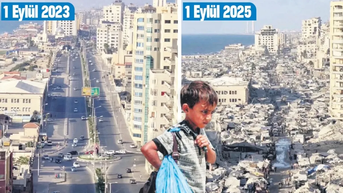 İsrail'in abluka altındaki Gazze'ye yönelik saldırıları sürerken, şehir adeta harabeye döndü. Bombardımanlarla sağlam yapı bırakmayan İsrail, sivillerin sığınabileceği binaları da hedef aldı. 2 yıl önce ayakta olan caddeler artık enkaz yığını haline gelirken, yerinden edilen Filistinliler çadırlarda hayatta kalma mücadelesi veriyor. Su ve gıda erişimi engellenen bölgede, hastalık ve ilaç eksikliği nedeniyle bebek ölümleri artıyor. Dünya ise bu insanlık dramına sessiz kalmaya devam ediyor.
