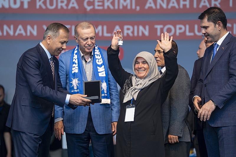 Başkan Erdoğan, ʺ300 Bininci Afet Konutu Kura Çekimi ve Anahtar Teslimi Töreniʺnde konuştu. (AA)